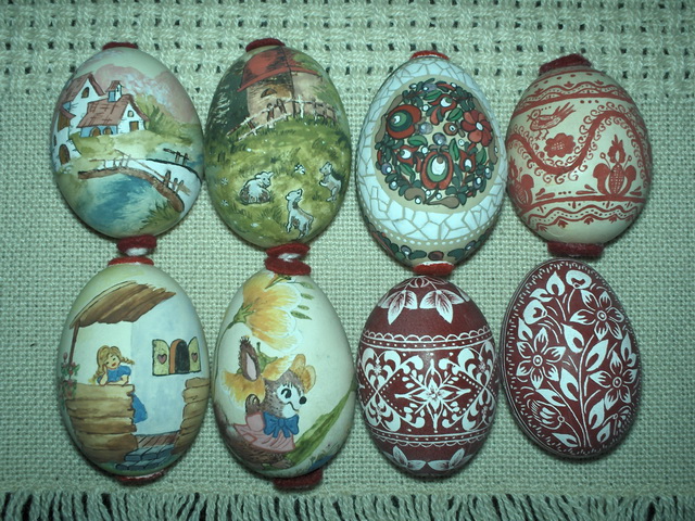 A csuhé és szalma természetes alapanyag, könnyű vele dolgozni, 15 éve foglalkozok vele, a tojásdíszítéssel 18 éve. Több technikával dolgozok: viaszoló, karcolásos, festés, csipkéző, patkolásos, faragásos. Lényegében nem tanított senki rá, sok mindenre magamtól jöttem rá. Így merészen osztom Antoine de Rivarolt gondolatát: "A tehetség a művészet és a lelkesedés keveréke. "