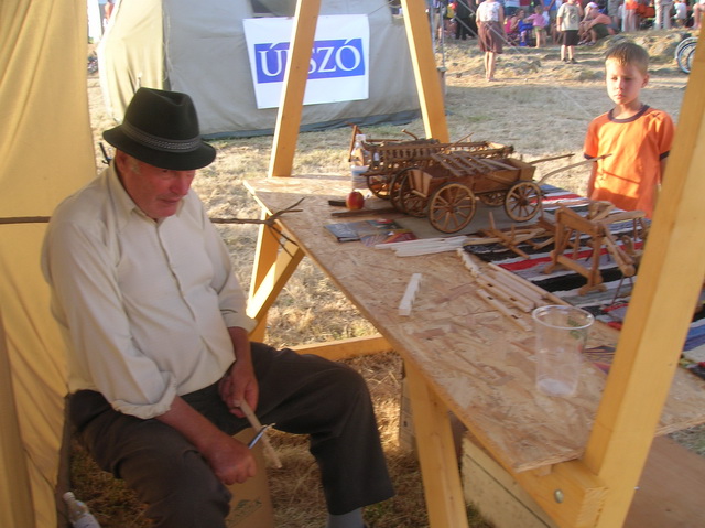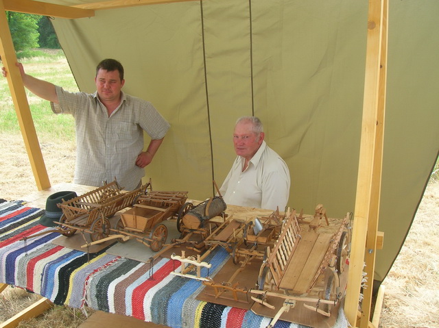 Csíkszentkirályon élek nyugdíjasként. Készítettem mindenféle használati eszközt, ami egy falusi gazdaságba szükséges. Ezeknek az eszközöknek kicsinyitett mását is megfaragtam: szekér, szán, kender feldolgozó eszközök.